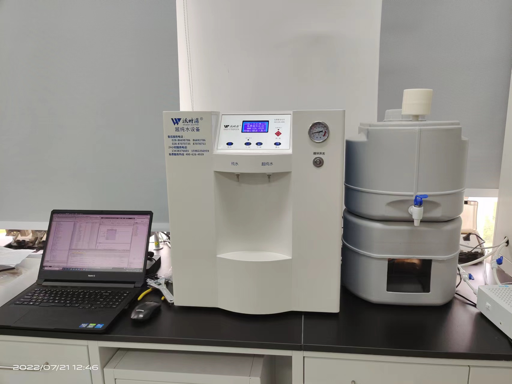 采用雙波長(zhǎng)紫外消解系統(tǒng),除熱源超濾膜組件,采用進(jìn)口離子交換樹(shù)脂過(guò)濾,使超純水能滿足各種實(shí)驗(yàn)要求。